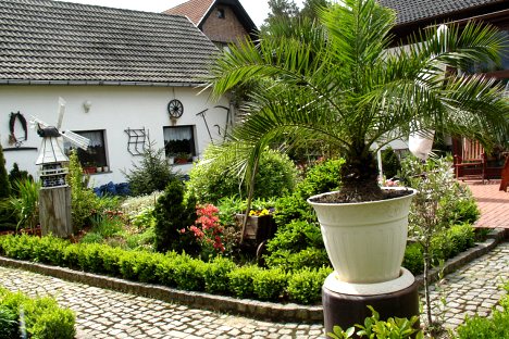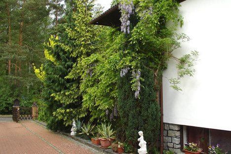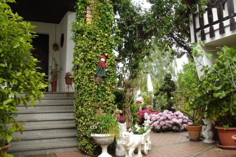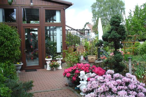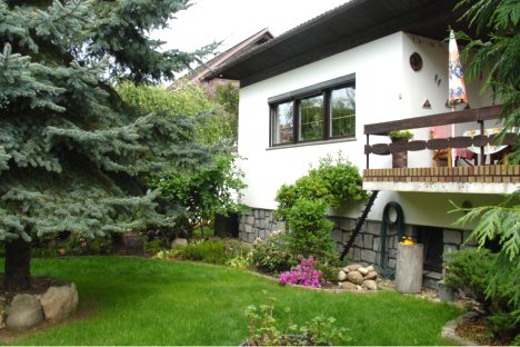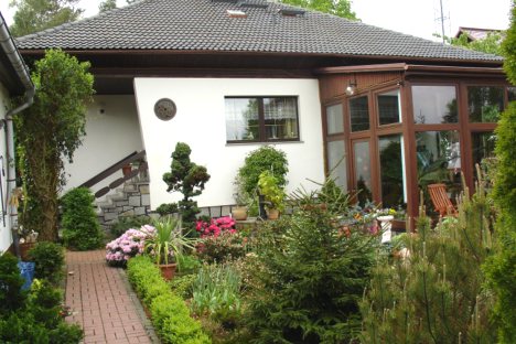 Unsere Pension liegt in einer Eigenheimsiedlung direkt am Wald. Auf dem 1000 qm großen Grundstück können Sie Grünfläche, Terrasse und Sitzecke nutzen.
